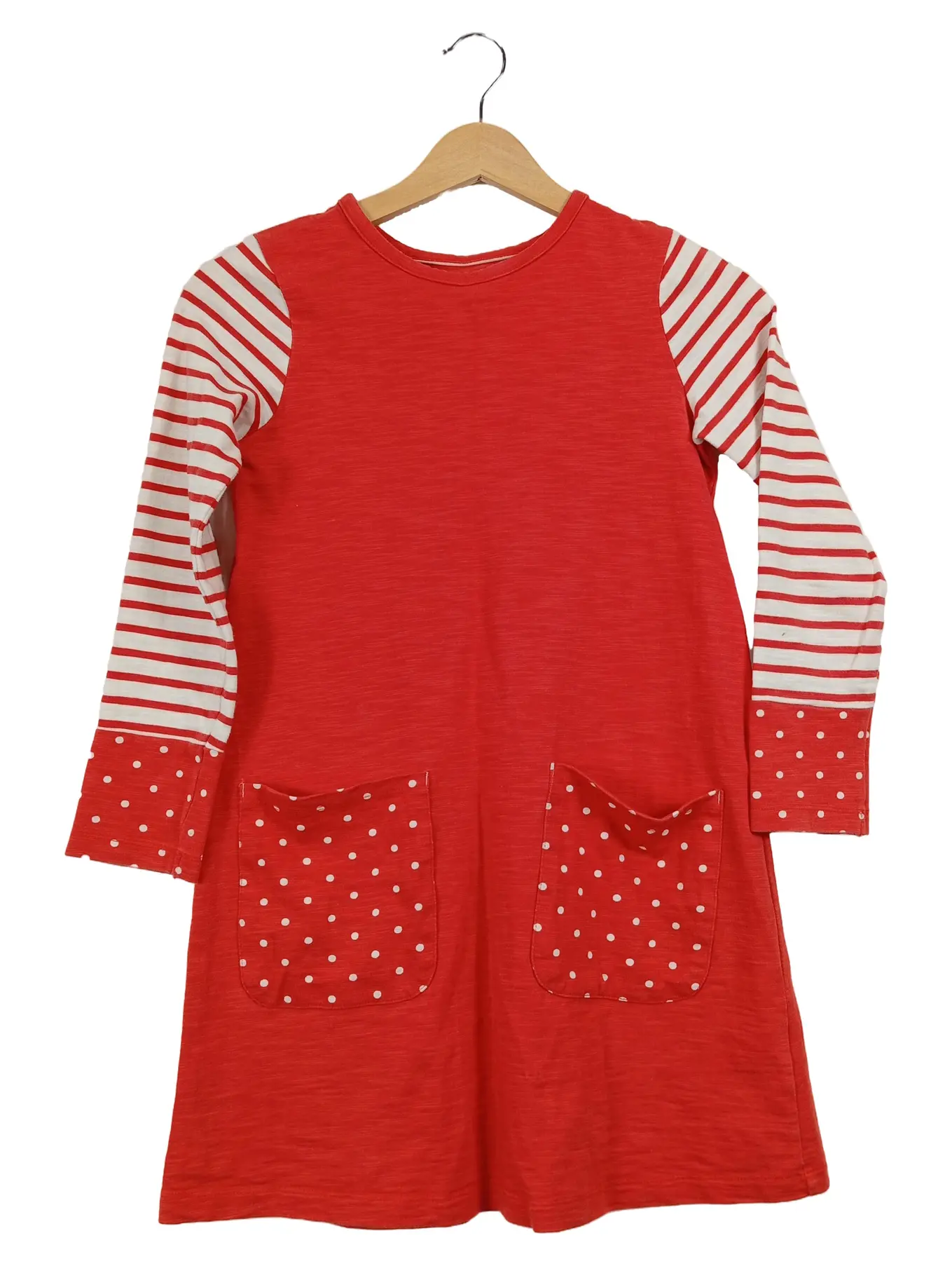 MINI BODEN Mädchen Freizeitkleid Gr. 140 Rot Gestreift Punkte Baumwolle