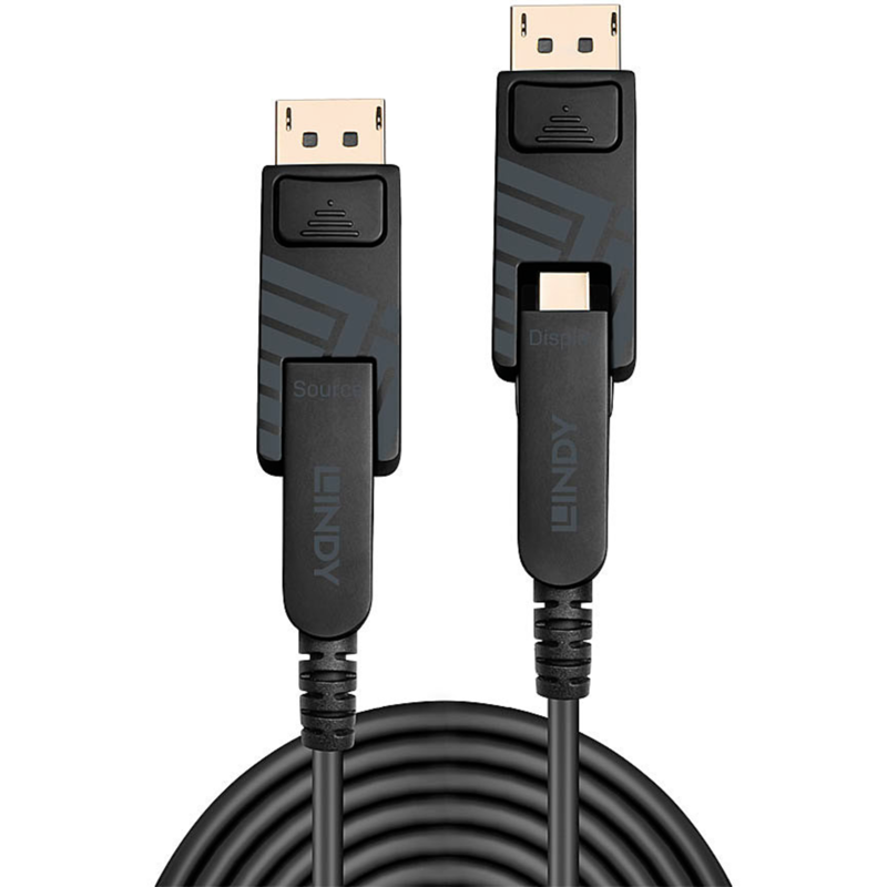 Lindy Fibre Optic Hybrid Mini DisplayPort 1.4 Kabel, schwarz, 20 Meter, mit