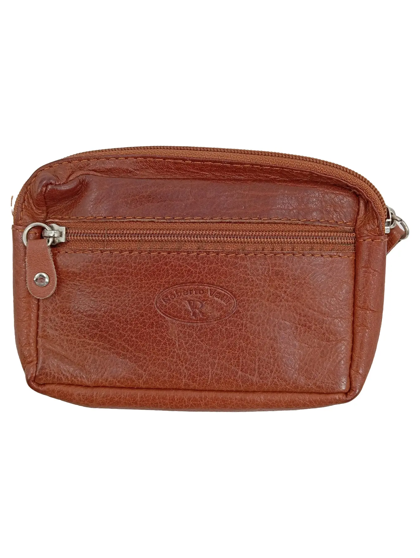 MARKENLOS Roberto Vallini Leder Geldbörse Braun Mini Portemonnaie Münzbörse