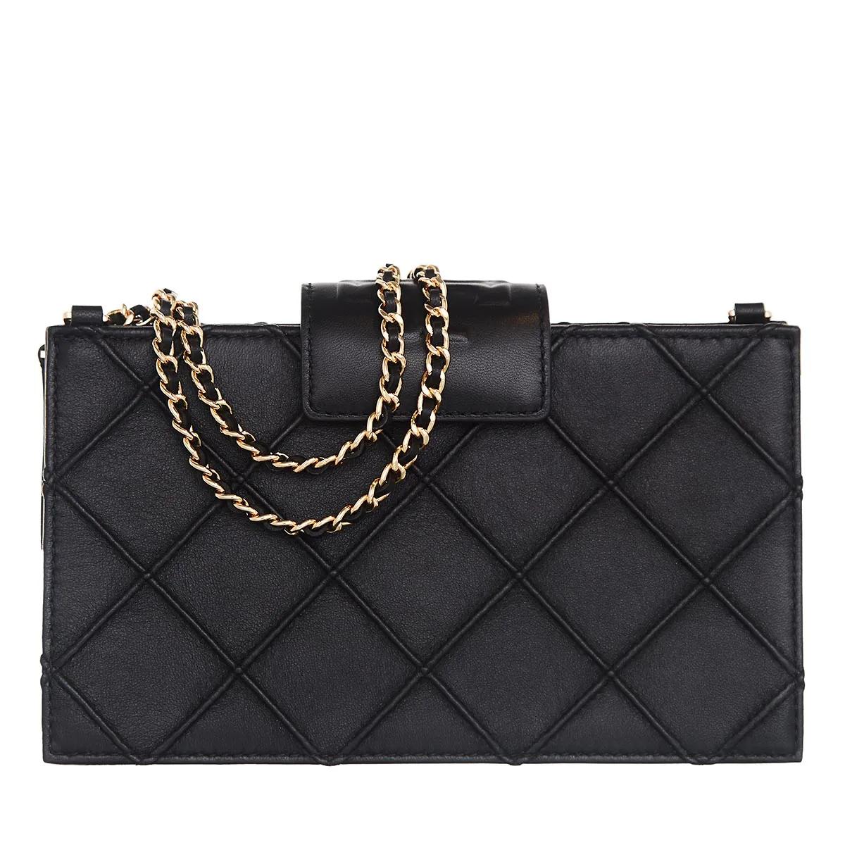 Tory Burch Portemonnaie - Fleming Mini Chain Wallet - Gr. unisize - in Schwarz - für Damen - aus Textil & Leder