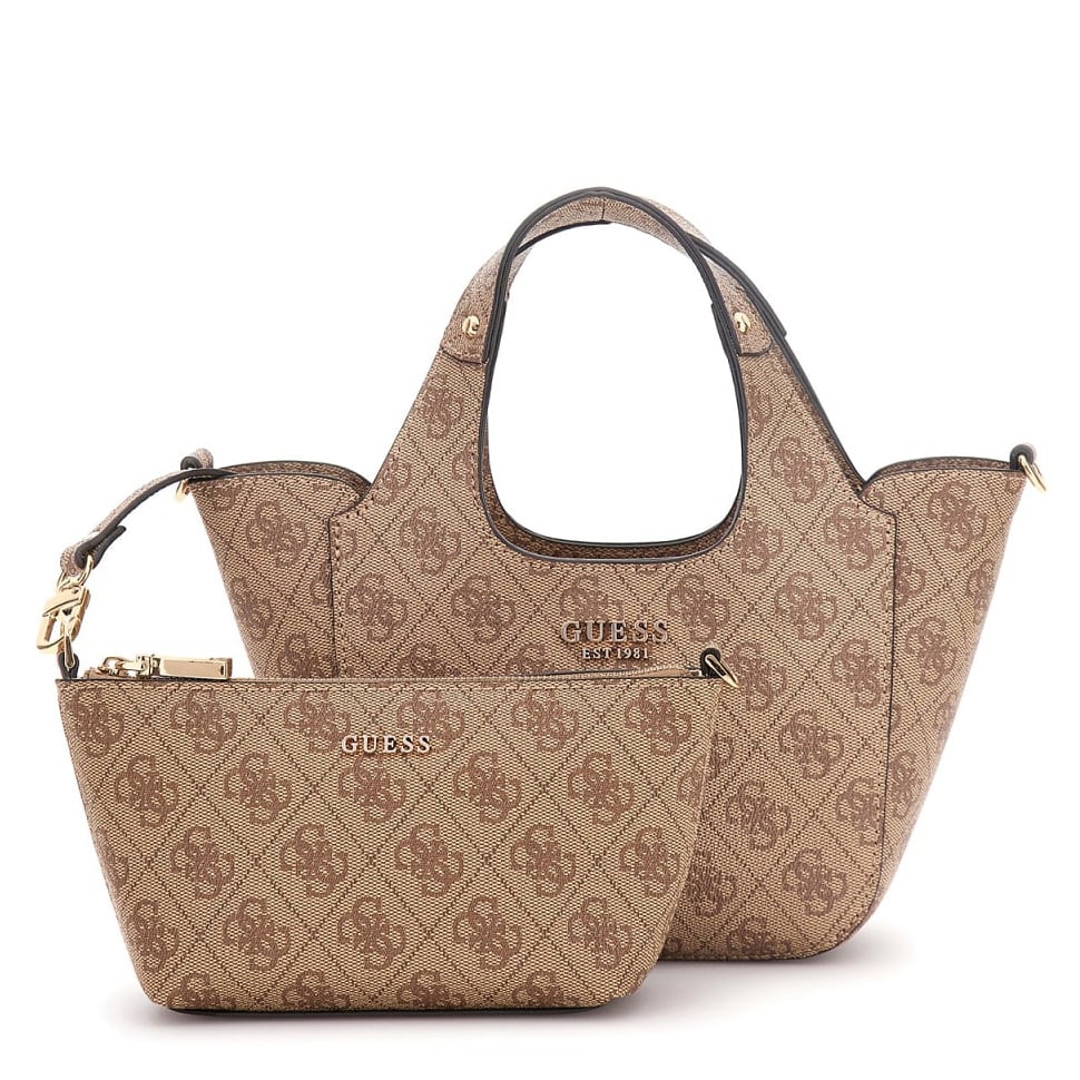 Guess Henkeltasche Calista 2in1 Mini Tote (HWSG) latte logo, Damen Handtasche braun aus Kunstleder