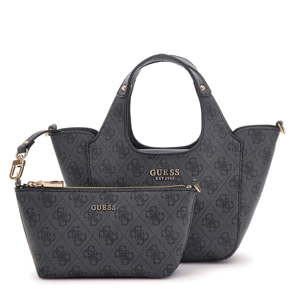 Guess Henkeltasche Calista 2in1 Mini Tote (HWSG) coal logo, Damen Handtasche grau aus Kunstleder