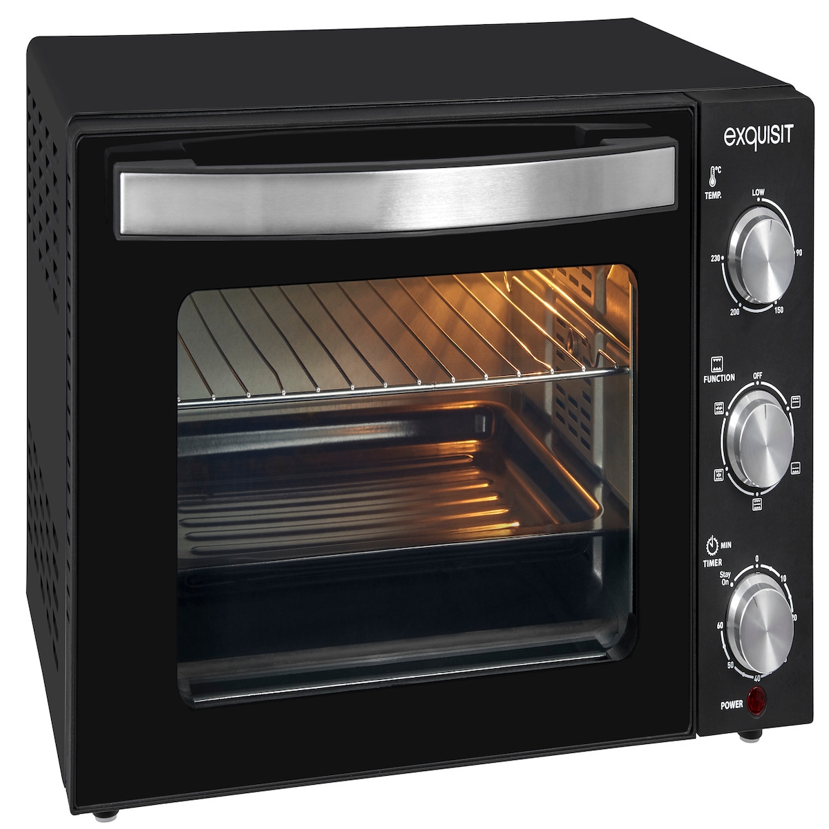 Exquisit Mini-Backofen MO 3302 sw | Tisch-Backofen | stufenlose Temperaturregelung | inkl. Drehspieß | 1500 Watt | Schwarz