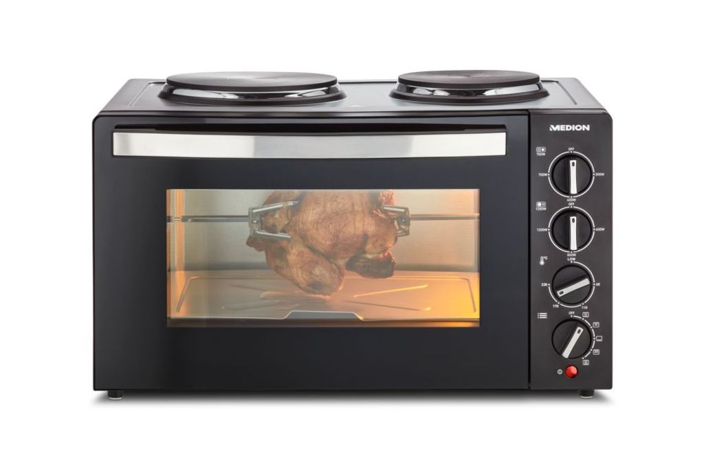 MEDION MD10307 Mini-Backofen mit Doppelkochplatte