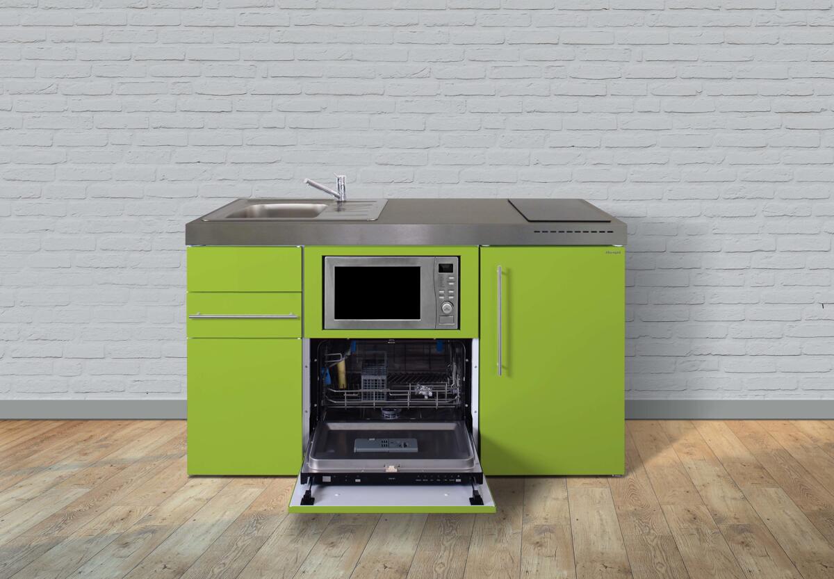 Stengel MPM 100 Miniküche, 100cm breit, Induktionskochfeld, Kühlschrank mit Gefrierfach, mit Mikrowelle, Spüle links, apfel grün (10100 010681 13)