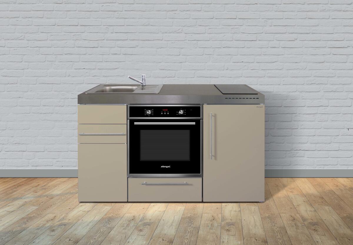 Stengel MKB 150 Miniküche, 150cm breit, Elektrokochfeld, Kühlschrank mit Gefrierfach, mit Backofen, Becken rechts, sand matt (11150 006011 11)