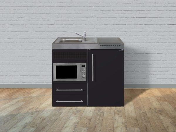 Stengel MPM 100 Miniküche, 100cm breit, Induktionskochfeld, Kühlschrank mit Gefrierfach, mit Mikrowelle, Spüle links, schwarz matt (10100 010681 12)