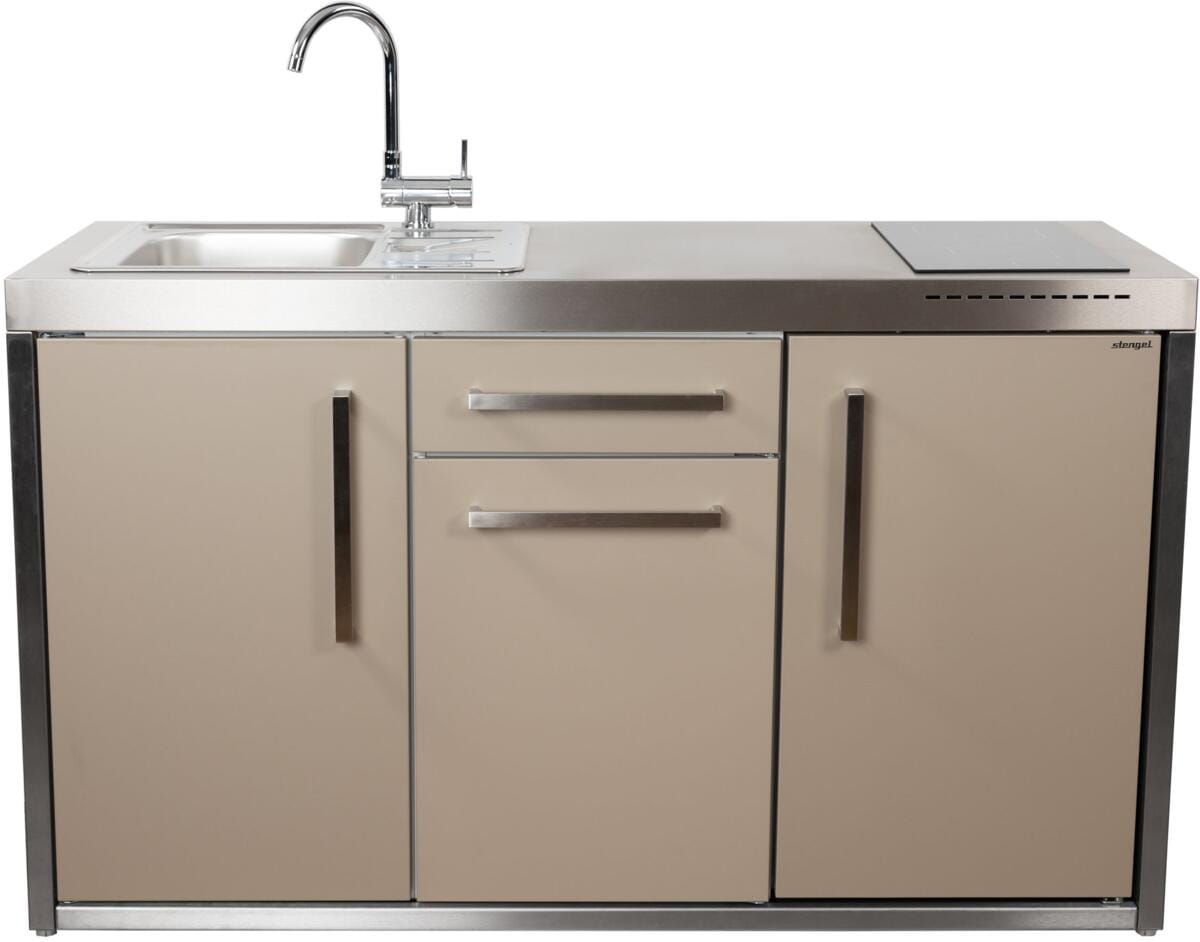 Stengel MO 150 S Miniküche Outdoor, Kühlschrank rechts, mit Gefrierfach, Induktionskochfeld rechts, Spüle links, Schublade, sand (2215010028111)