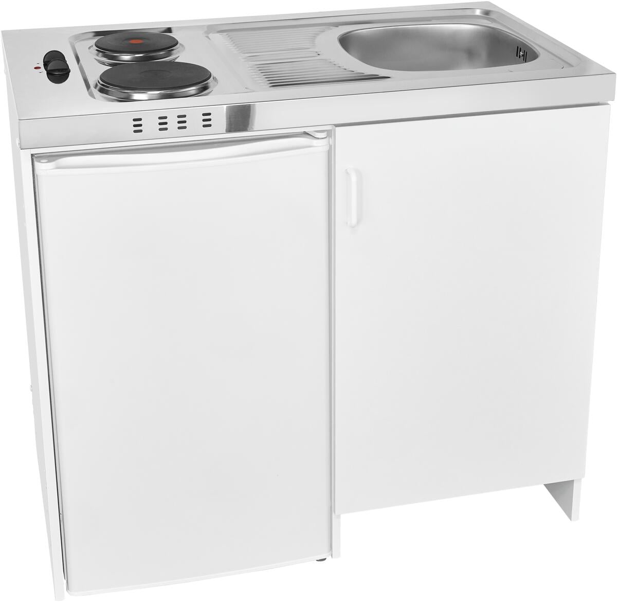 Stengel ME 120 Miniküche, 120cm breit, mit Abtropffläche, Kühlschrank mit Gefrierfach, Spüle rechts, weiß (14120 000053 00)