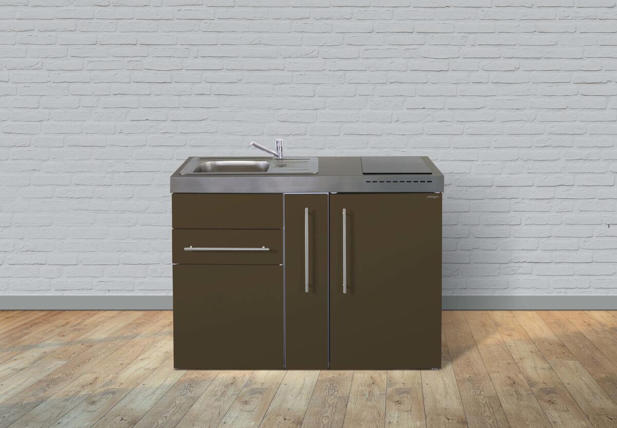 Stengel MP 120 A Miniküche, 120cm breit, Induktionskochfeld, Kühlschrank mit Gefrierfach, Spüle rechts, mokka metallic (10120 102671 14)