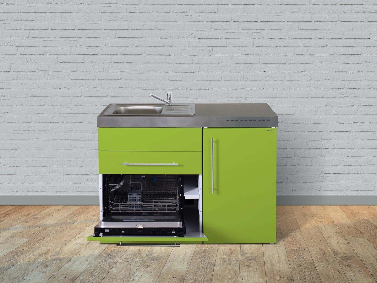 Stengel MPGS 120 Miniküche, 120cm breit, Induktionskochfeld, Kühlschrank mit Gefrierfach, Geschirrspüler 6 Maßgedecke, Becken links, apfel grün (10120