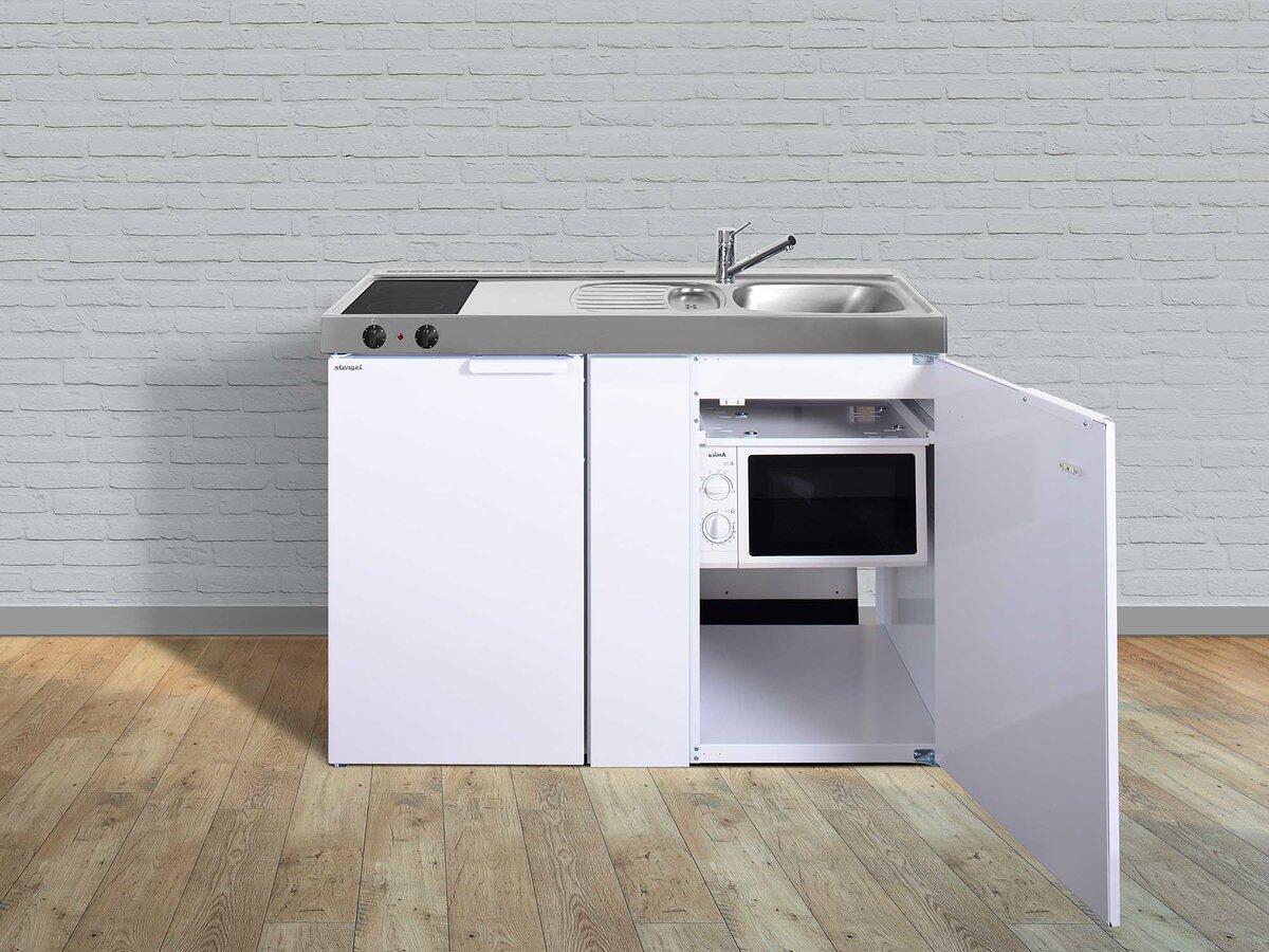 Stengel MKM 120 Miniküche, 120cm breit, mit Glaskeramikkochfeld, Kühlschrank mit Gefrierfach, mit Mikrowelle, Spüle rechts, weiß (11120 011031 00)