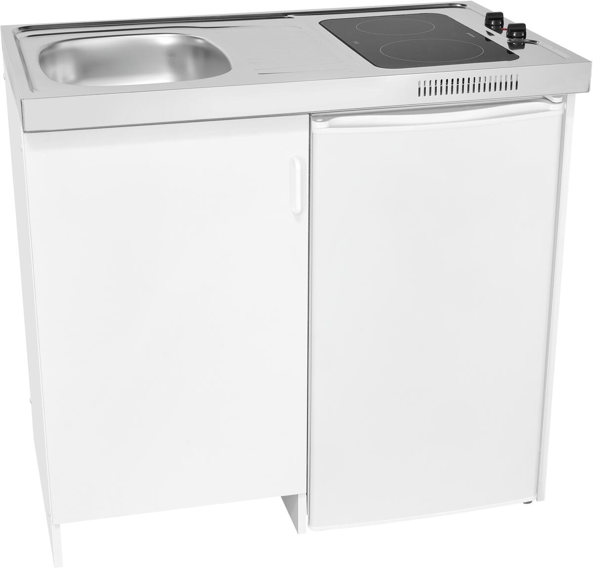 Stengel MP 100 S Miniküche, 100cm breit, Kühlschrank mit Gefrierfach, Becken rechts, mit Glaskeramikkochfeld, weiß (10100 100631 00)