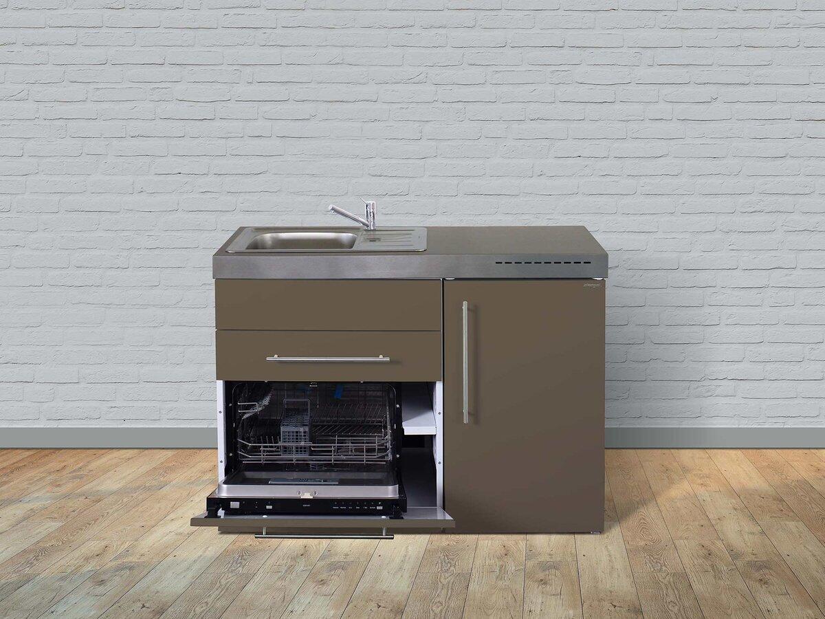 Stengel MPGS 120 Miniküche, 120cm breit, Induktionskochfeld, Kühlschrank mit Gefrierfach, Geschirrspüler 6 Maßgedecke, Becken rechts, mokka metallic (