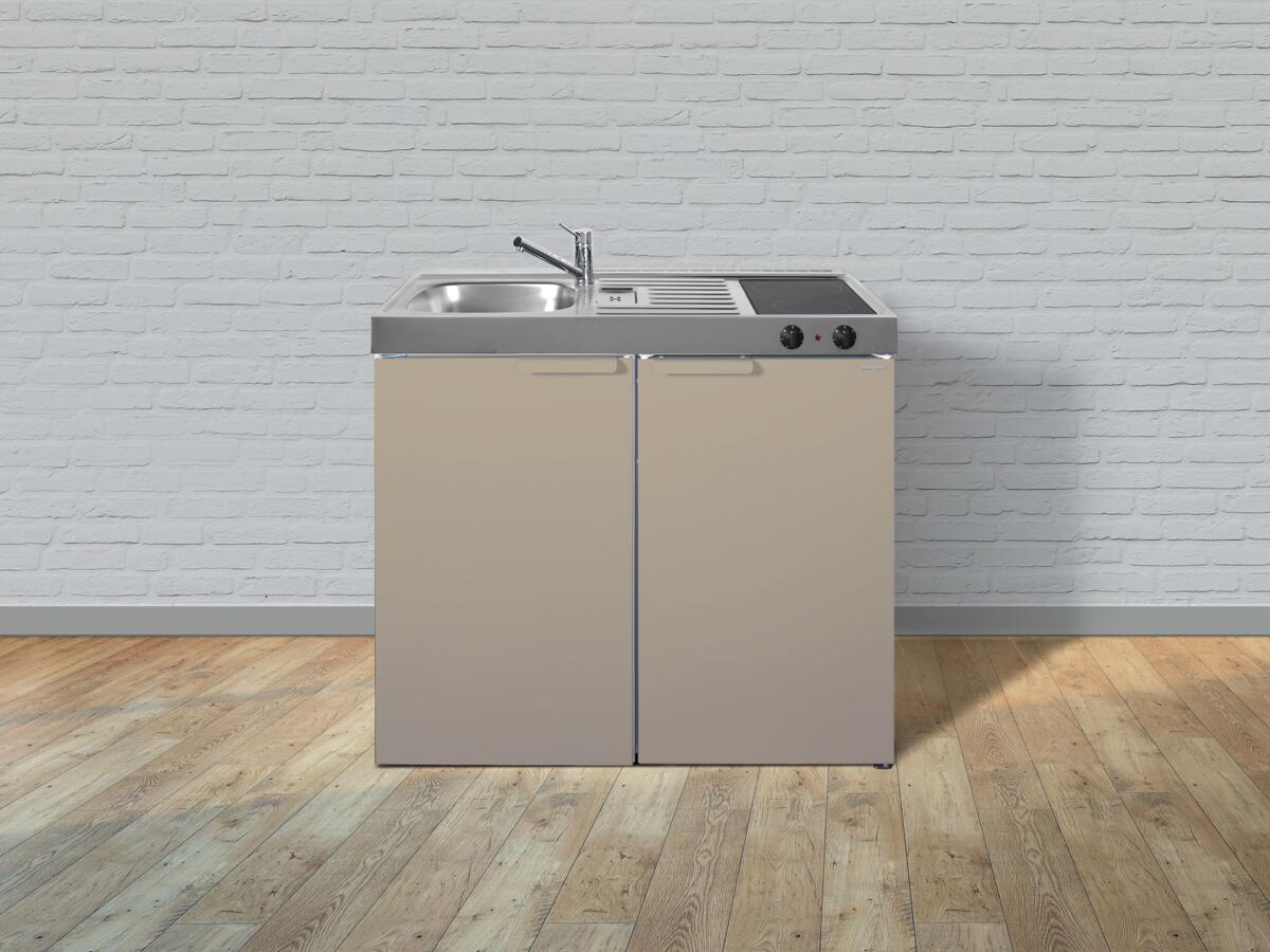 Stengel MK 100 Miniküche, 100cm breit, Glaskeramikkochfeld, Kühlschrank mit Gefrierfach, Spüle links, sand matt (11100 000041 11)