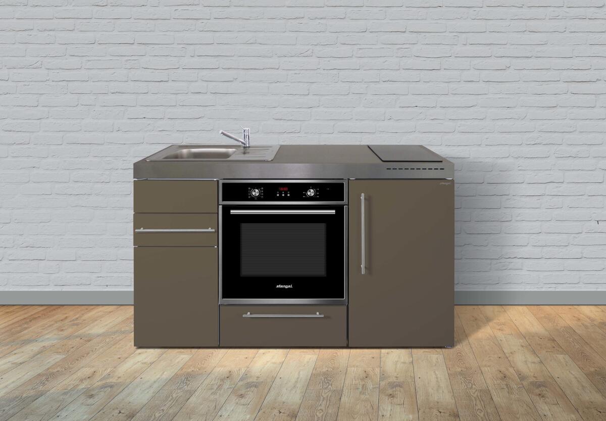 Stengel MKB 150 Miniküche, 150cm breit, Elektrokochfeld, Kühlschrank mit Gefrierfach, mit Backofen, Becken rechts, mokka metallic (11150 006011 14)