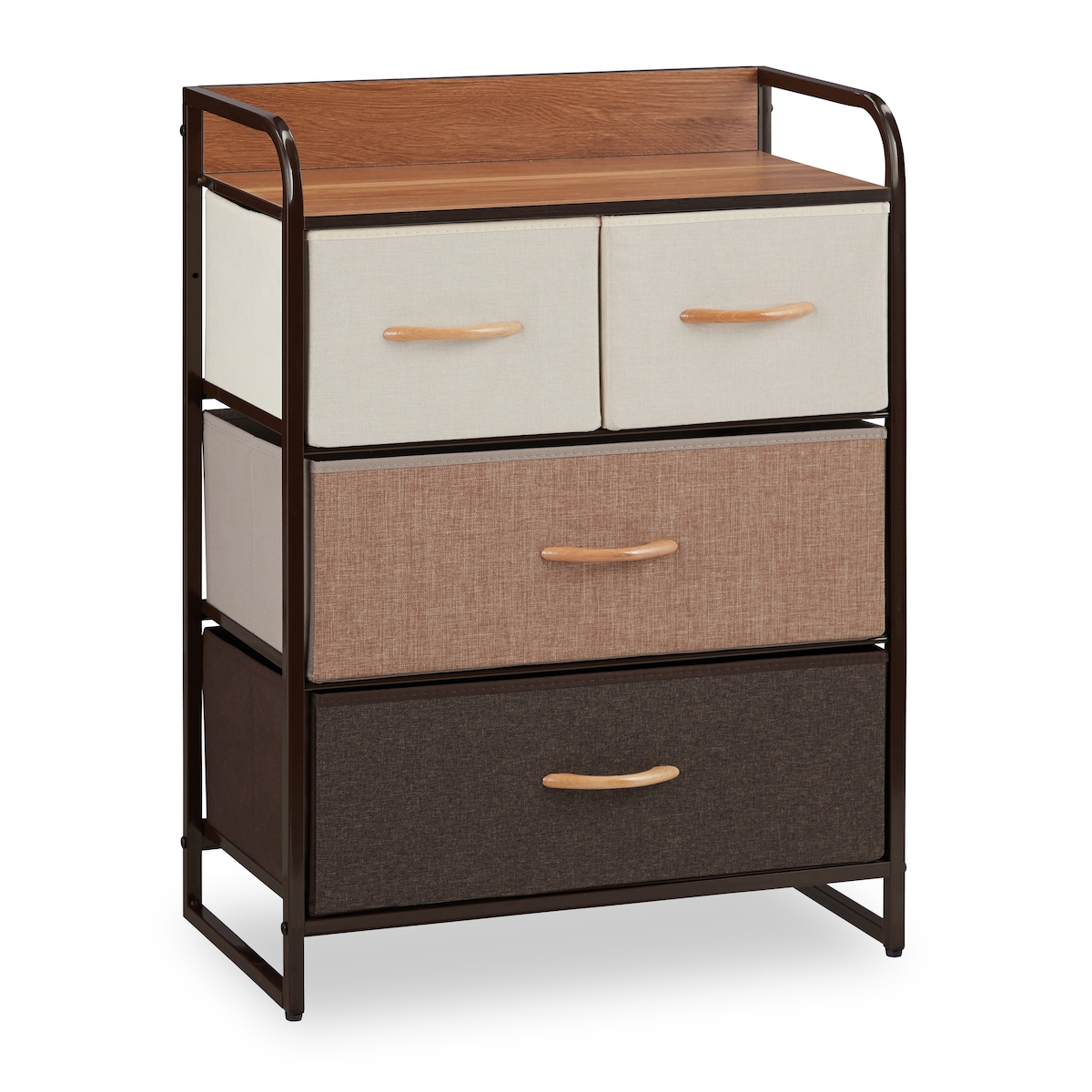 Relaxdays Schubladenschrank, 4 Stoff Fächer, Ablage, Schlafzimmer Nachtschrank, Minikommode HBT 79 x 58 x 31,5 cm, braun