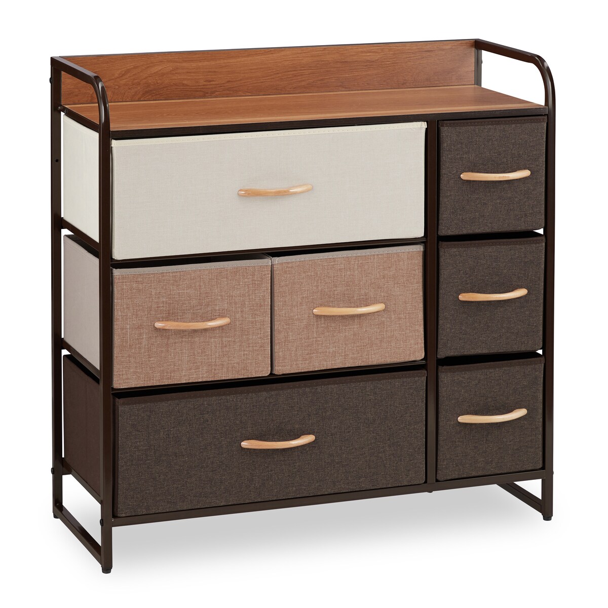 Relaxdays Schubladenschrank, 7 Stoff Fächer, Ablage, Schränkchen, Stahlgestell, Minikommode HBT 79 x 80 x 31,5cm, braun