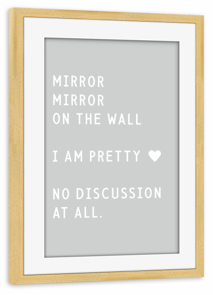 Poster mit Rahmen kiefer "Mirror mirror on the wall" artboxONE - Typografie,Lustig - Mirror,Beauty,Pretty,Discussion