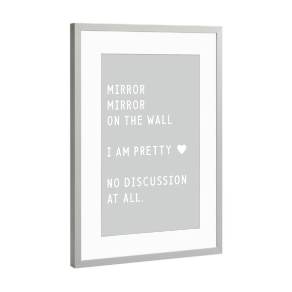 Poster mit Rahmen Silber "Mirror mirror on the wall" artboxONE - Typografie,Lustig - Mirror,Beauty,Pretty,Discussion