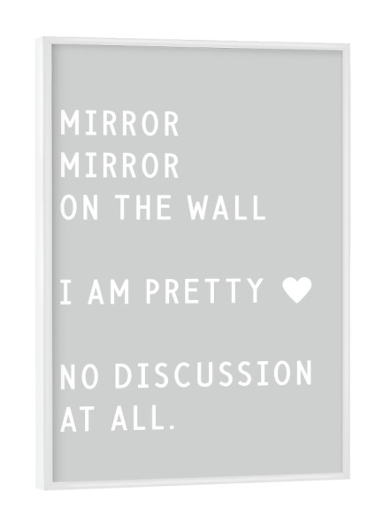 Poster mit Rahmen weiß "Mirror mirror on the wall" artboxONE - Typografie,Lustig - Mirror,Beauty,Pretty,Discussion