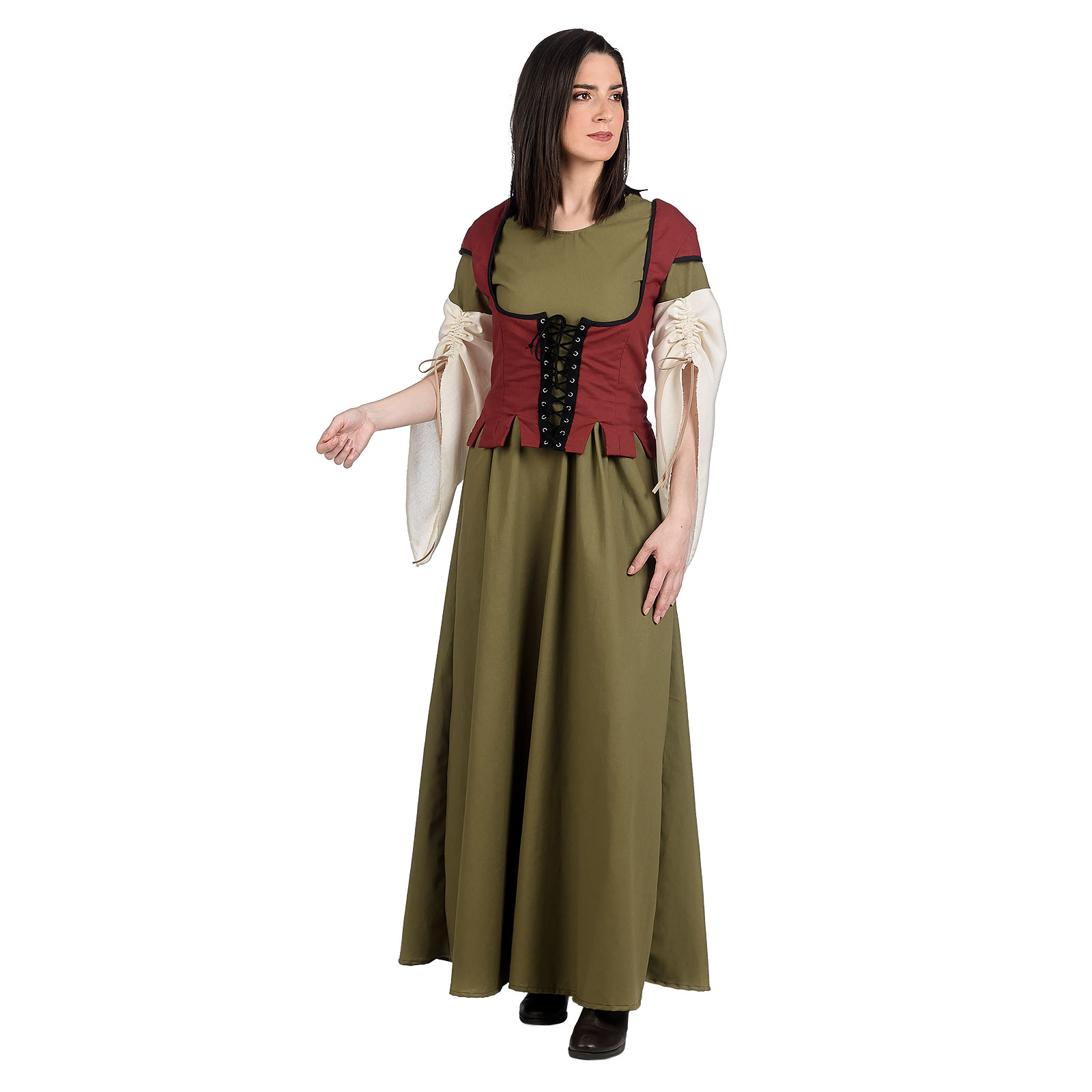 Mittelalter Maid Kostüm Damen - M - Beige Grün Rot