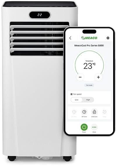 Meaco MeacoCool Pro Serie 9000 Mobiles Klimagerät – WiFi-fähig mit Meaco App, energieeffizient, geräuscharm, inklusive flexiblem Fenster-Kit (A-MC9000