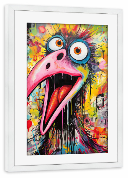 Poster mit Rahmen weiß "Big Bird abstract" artboxONE - Tiere,Abstrakt - Street art,Abstract,Modern,Pop art,Colorful,Abstract art,Pop,Contemporary
