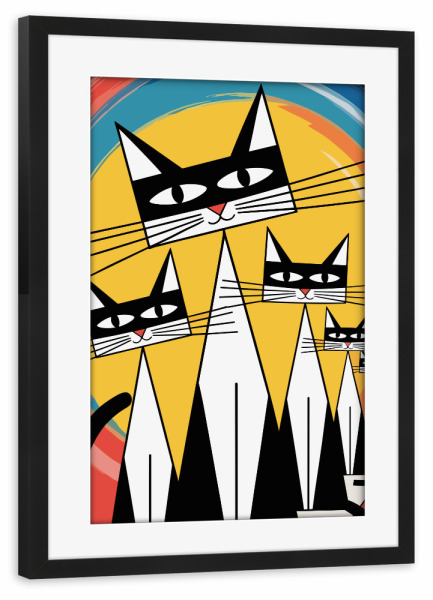 Poster mit Rahmen schwarz "Line of Felines" artboxONE - Tiere,Lustig - Cat,Cats,Art,Kandinsky,Digital,Painting,Modern,Abstract,Geometric,Minimalis
