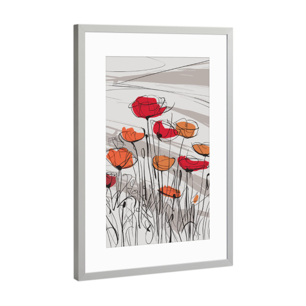 Poster mit Rahmen Silber "Abstract Poppies" artboxONE - Floral - Poppies,Abstract,Minimalist,Sketch,Floral,Flowers,Modern,Art,Red,Drawing