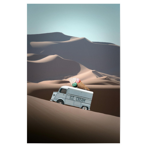 Poster "ICE CREAM VAN" artboxONE - Fiktion,Lustig - Desert,Ice cream,Modern art,Humor,Funny,Cute,Van,Car,Food,Travel,Abstract,Surreal,Minimalism