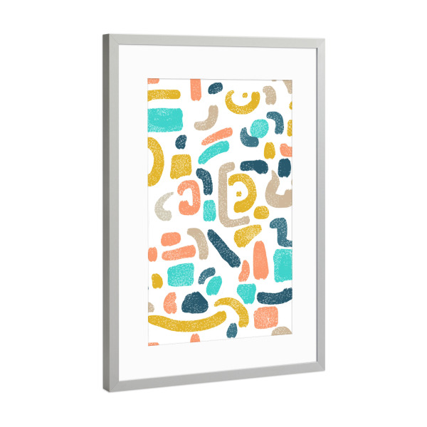 Poster mit Rahmen Silber "Alphabet Soup" artboxONE - Abstrakt - Pattern,Random,Abstract,Doodle,Pastel,Shapes,Fall,Spring,Summer,Modern art