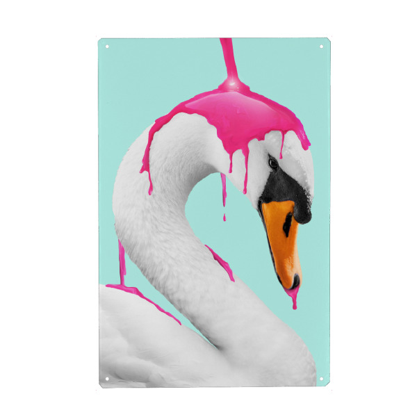 Holzbild "MAKING A FLAMINGO" artboxONE - Tiere,Abstrakt - Swan,Animal,Bird,Funny,Abstract,Surreal,Minimal,Pop art,Contemporary art,Modern art