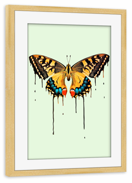 Poster mit Rahmen kiefer "MELTING BUTTERFLY" artboxONE - Tiere - Butterfly,Animal,Pop-art,Modern-art,Contemporary art,Abstract,Surreal,Minimal,Melting