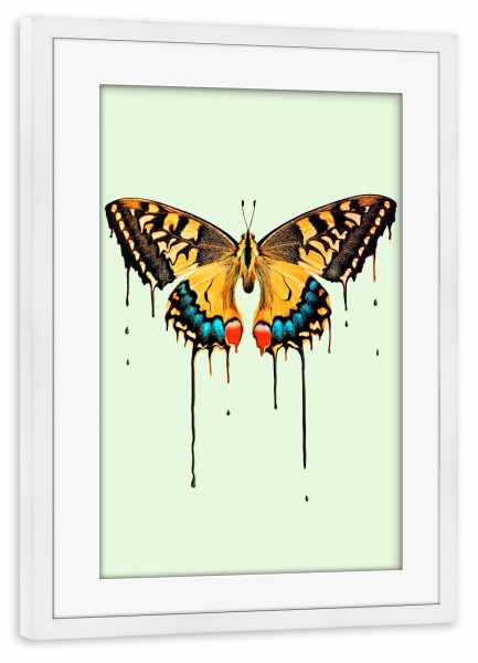 Poster mit Rahmen weiß "MELTING BUTTERFLY" artboxONE - Tiere - Butterfly,Animal,Pop-art,Modern-art,Contemporary art,Abstract,Surreal,Minimal,Melting