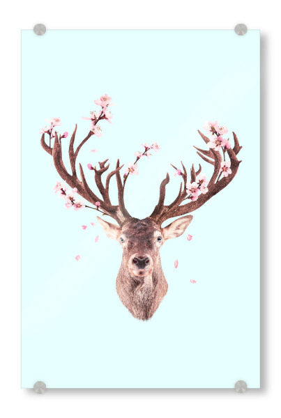 Acrylglasbild "DEER OF SPRING" artboxONE - Tiere,Fiktion - Deer,Abstract,Contemporary art,Modern art,Animal,Flowers,Cherry blossom