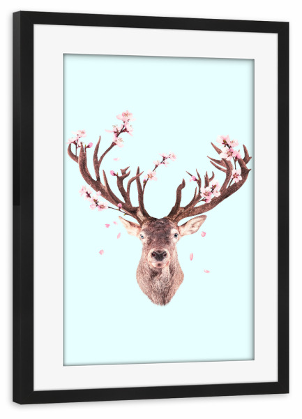 Poster mit weißem Rahmen "DEER OF SPRING" artboxONE - Tiere,Fiktion - Deer,Abstract,Contemporary art,Modern art,Animal,Flowers,Cherry blossom