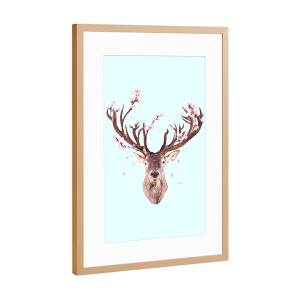 Poster mit Rahmen Kupfer "DEER OF SPRING" artboxONE - Tiere,Fiktion - Deer,Abstract,Contemporary art,Modern art,Animal,Flowers,Cherry blossom