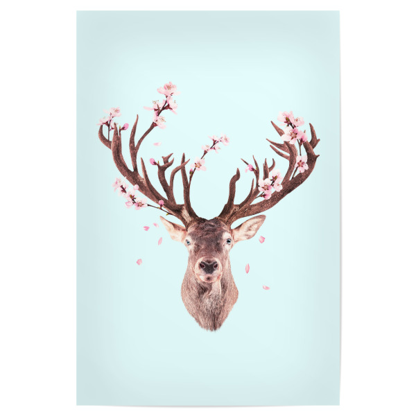 Poster 30x20 cm "DEER OF SPRING" artboxONE - Tiere,Fiktion - Deer,Abstract,Contemporary art,Modern art,Animal,Flowers,Cherry blossom