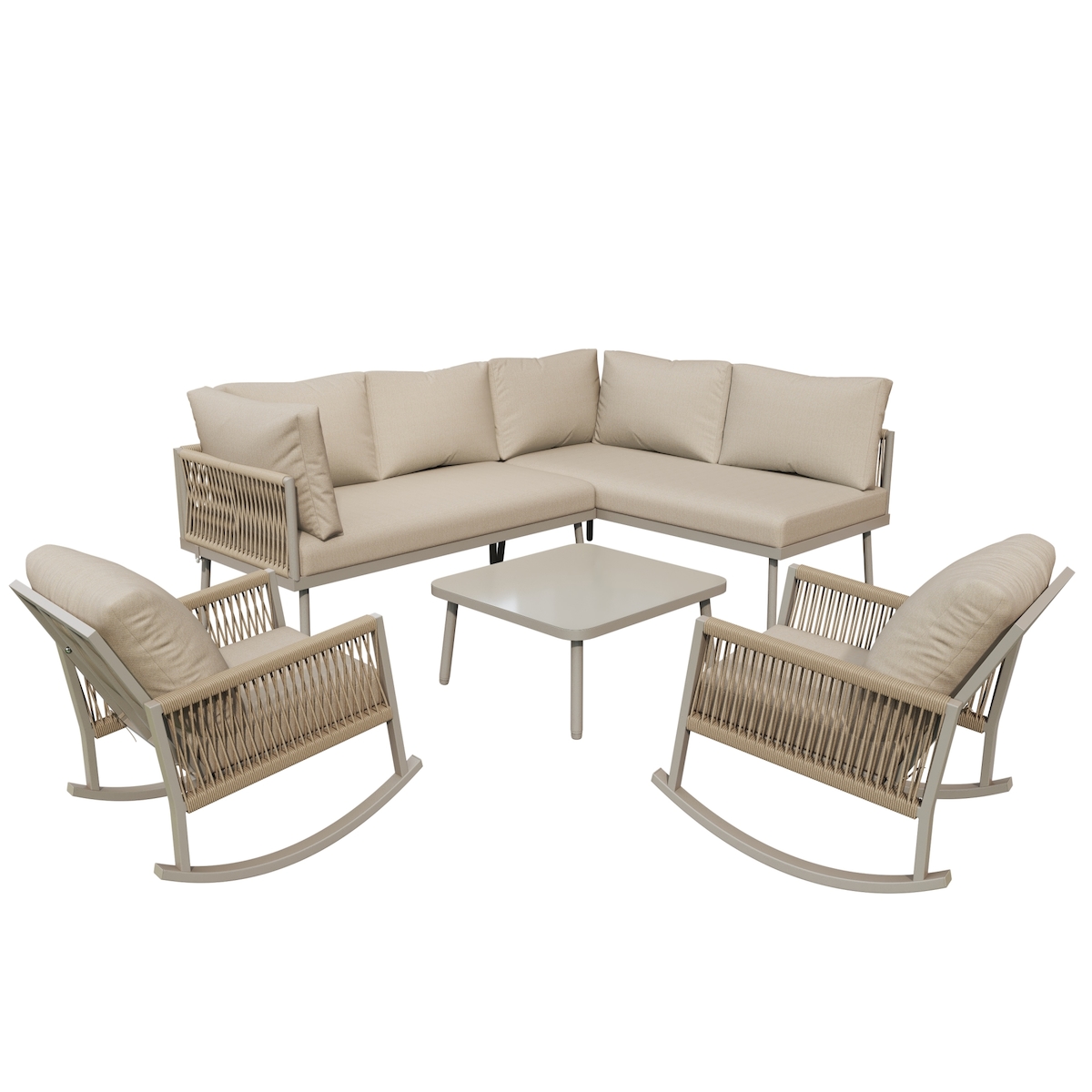 Merax Modulare Gartenlounge mit Schaukelstühlen, L-sofa & Beistelltisch, modernes Seilgeflecht-Design, Beige