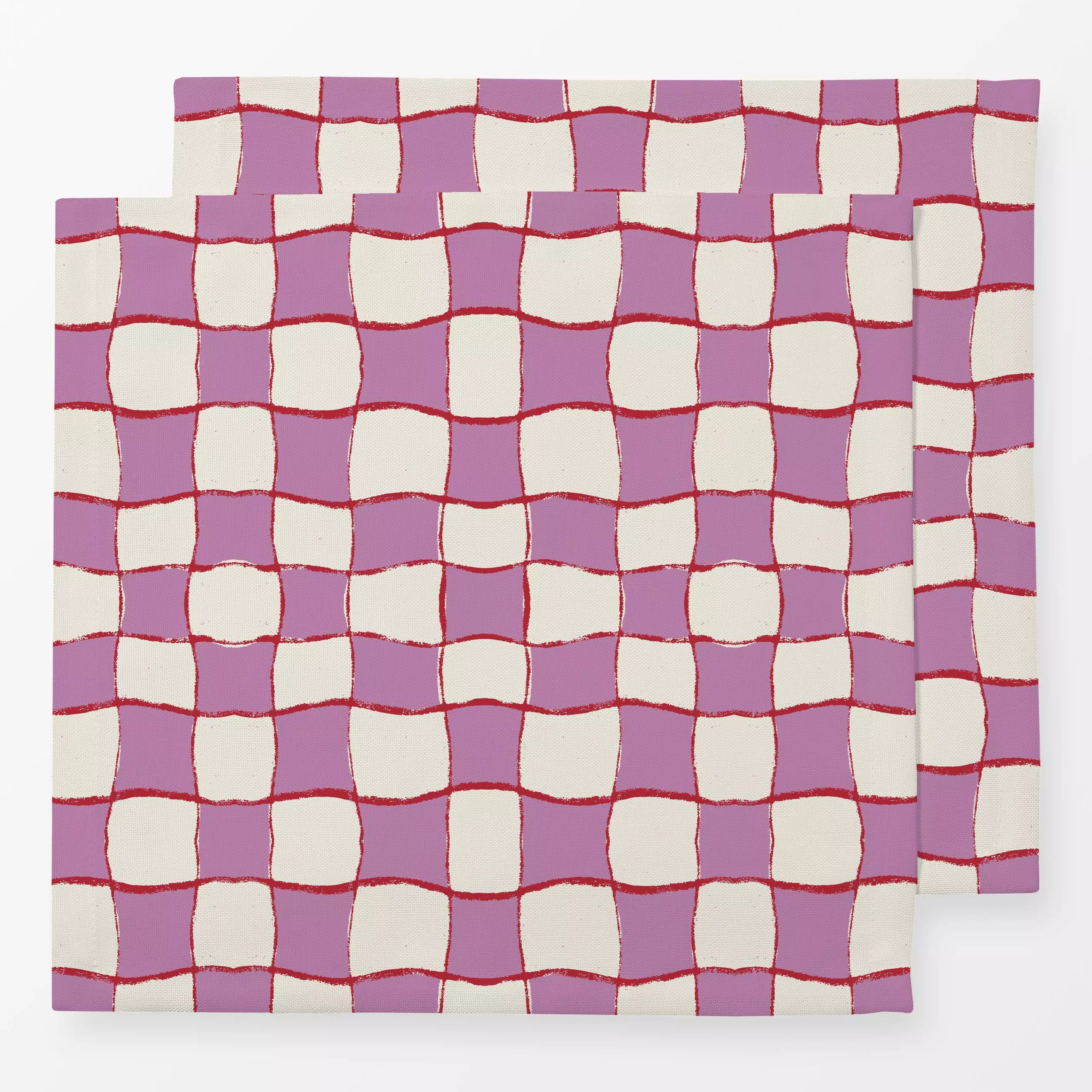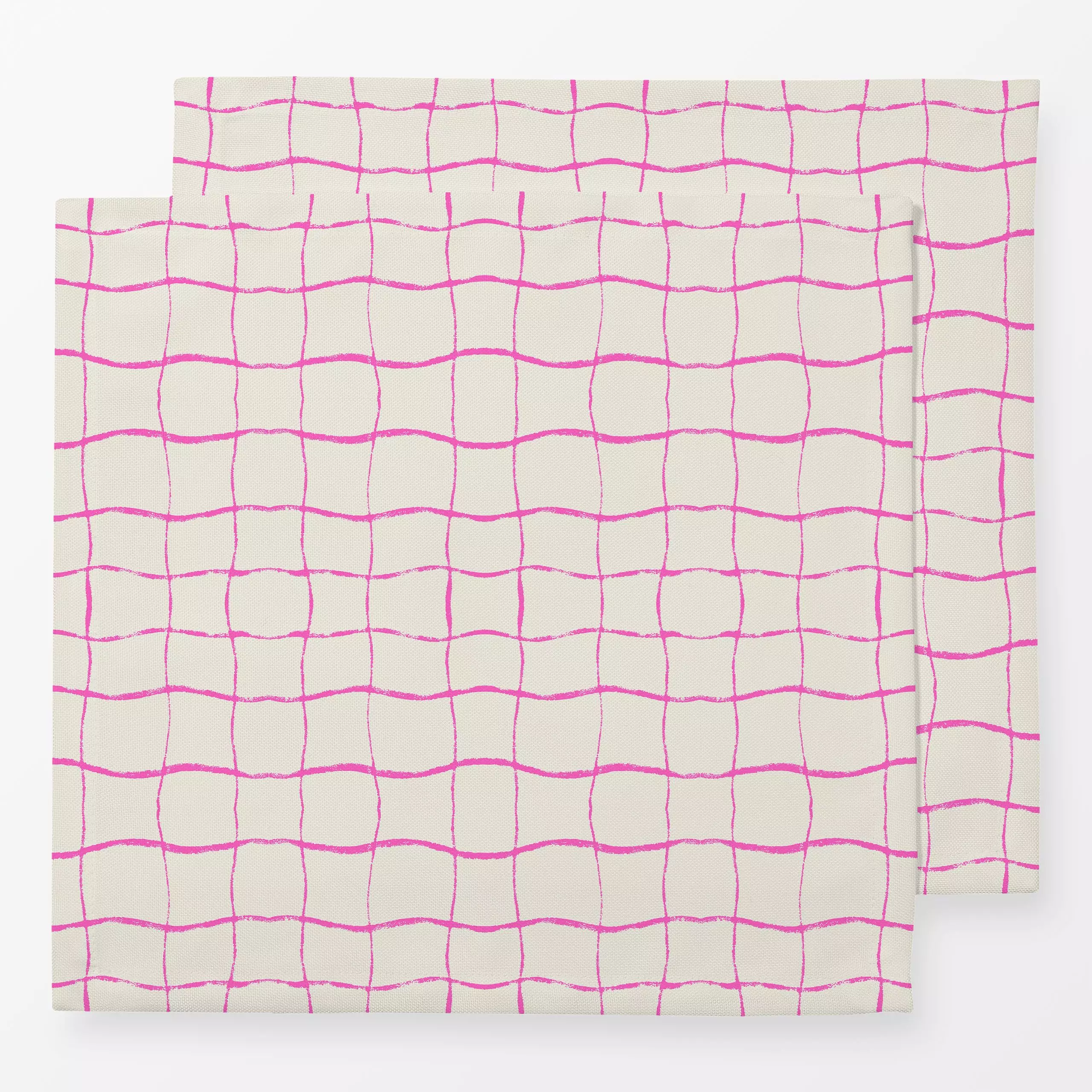 Servietten Pool Karo pink - Sommer, Sport, Symbole & Muster - von „Katrin Graff"; creme, modern, pink, Karos, kariert, fun, ...