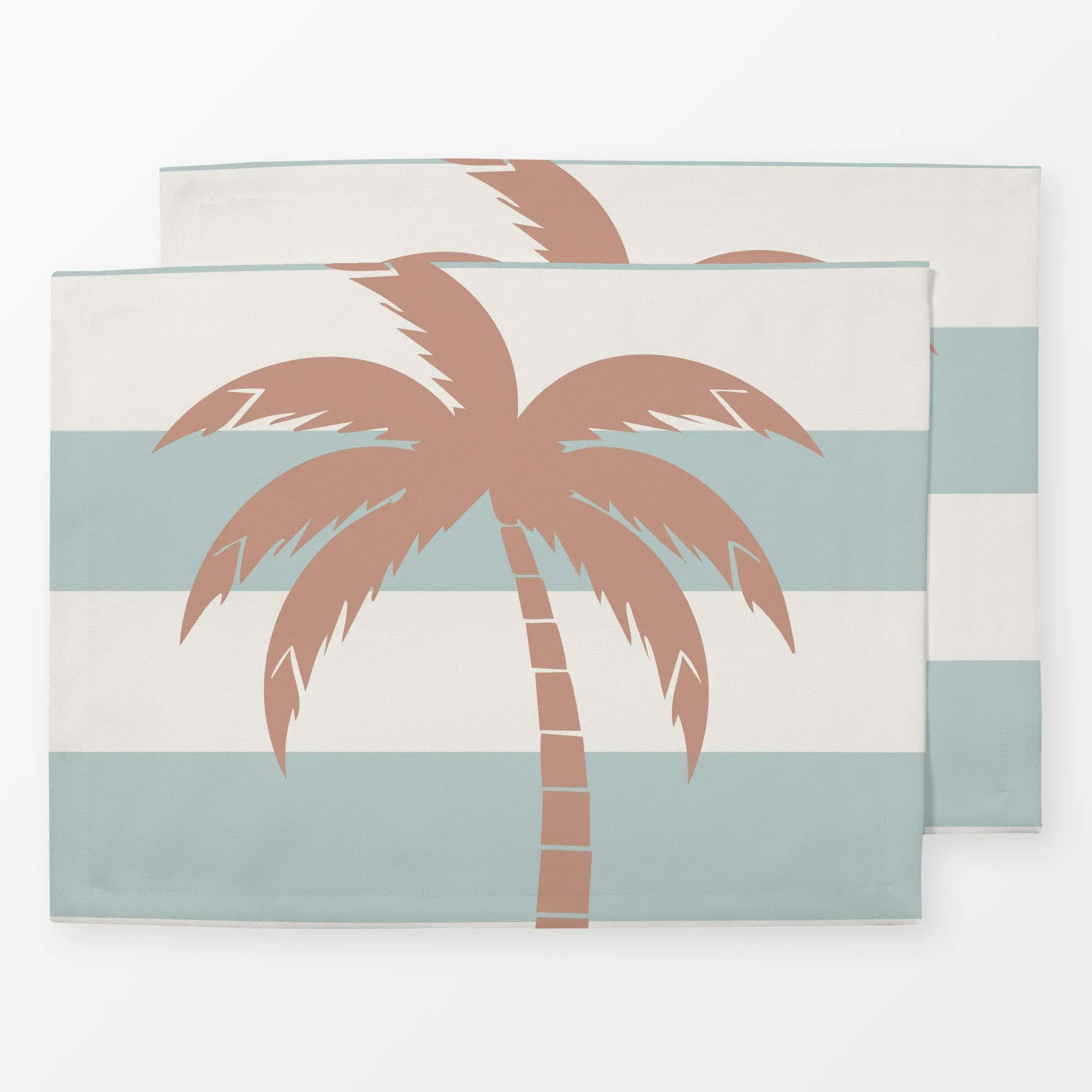 Tischset Beach-Vibes Palmen - Sommer, Pflanzen & Botanik - von „Sara Maria"; Streifen, Palmen, Strand, modern, pool, mediter...
