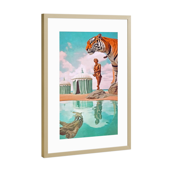 Poster mit Rahmen Gold "SURREALISMUS-TIGER-POOL" artboxONE - Tiere,Abstrakt - Surrealismus,Innenarchitektur,Großes puzzle,Moderne kunst,Nachrichten