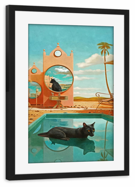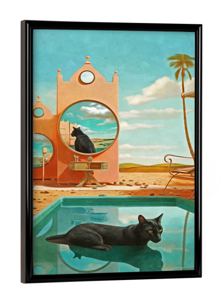 Poster mit Rahmen schwarz "SURREALISMUS-CAT-POOL" artboxONE - Tiere,Abstrakt - Surrealismus,Innenarchitektur,Moderne kunst,Katze