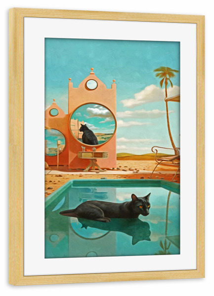 Poster mit Rahmen kiefer "SURREALISMUS-CAT-POOL" artboxONE - Tiere,Abstrakt - Surrealismus,Innenarchitektur,Moderne kunst,Katze
