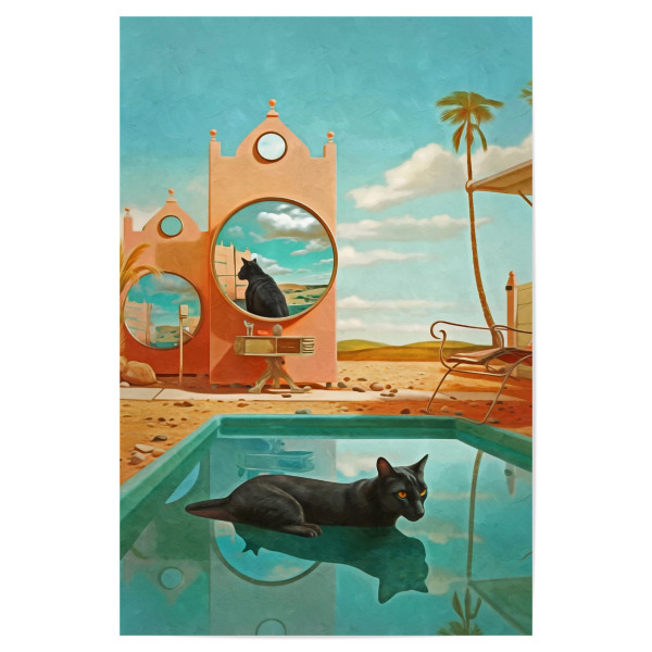 Poster 30x20 cm "SURREALISMUS-CAT-POOL" artboxONE - Tiere,Abstrakt - Surrealismus,Innenarchitektur,Moderne kunst,Katze