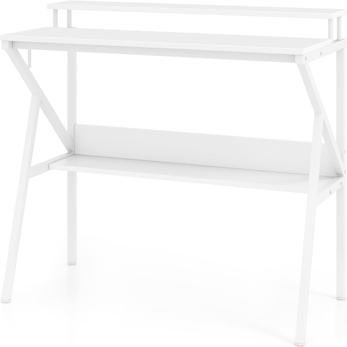 COSTWAY Desk with Monitor Stand, 100 x 50 cm, Small Computer Desk, PC Table with Shelf, Hook & Metal Frame