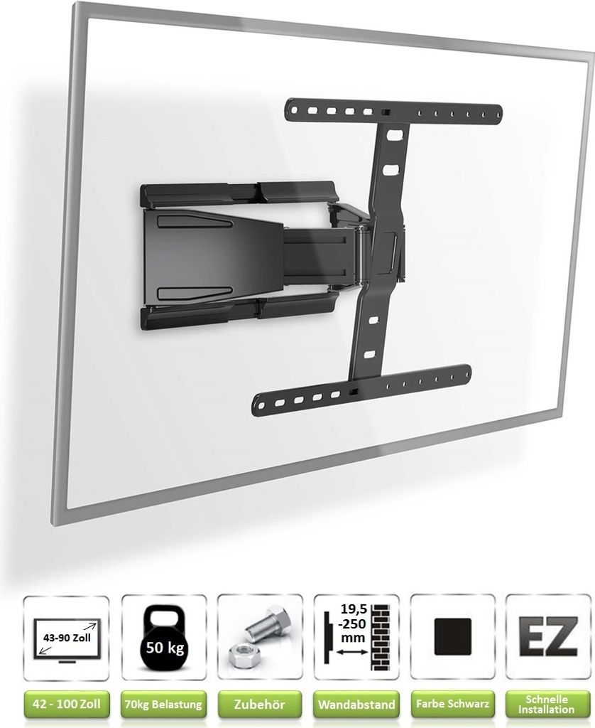 TV Wandhalterung für 43-90 Zoll Fernseher| Schwenkbar Neigbar Kippbar Ausziehbar | 50 kg Tragkraft | Monitor Wand Halterung für VESA 100x200 - 60...