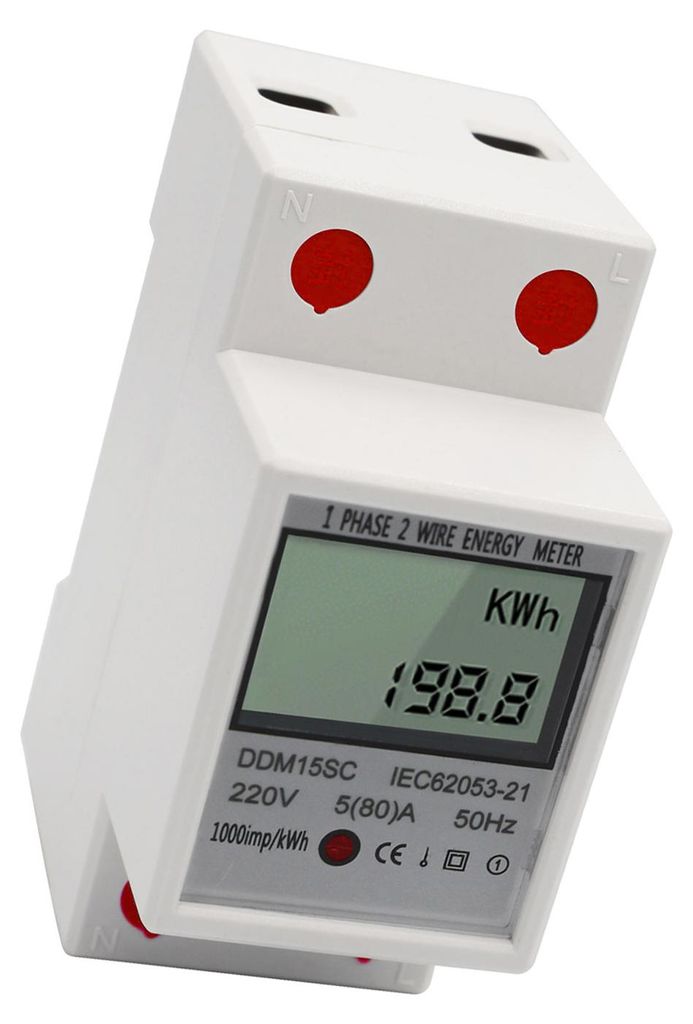 LCD Digital Display Einphase-DIN-RAG-Energie-Energiemeter 5-80A 220V 50 Hz Elektronischer KWH-Stromverbrauch Monitor DDM15SC