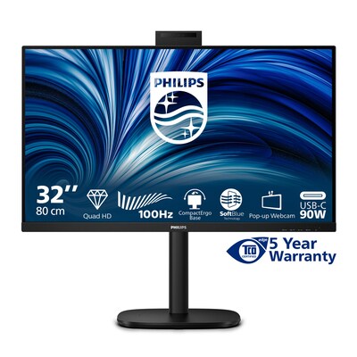 Philips 32B2U3601H 31.5 Zoll QHD IPS Office Monitor 16:9 100 Hz DP/HDMI/USB-C PD90W/LAN Dock Webcam